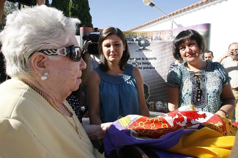 Las dos nietas de Antonio Manuel Palma Moreno, fusilado al poco de estallar la guerra, no han podido contener las lágrimas este sábado cuando les han entregado sus restos óseos en una caja cubierta por la bandera republicana.